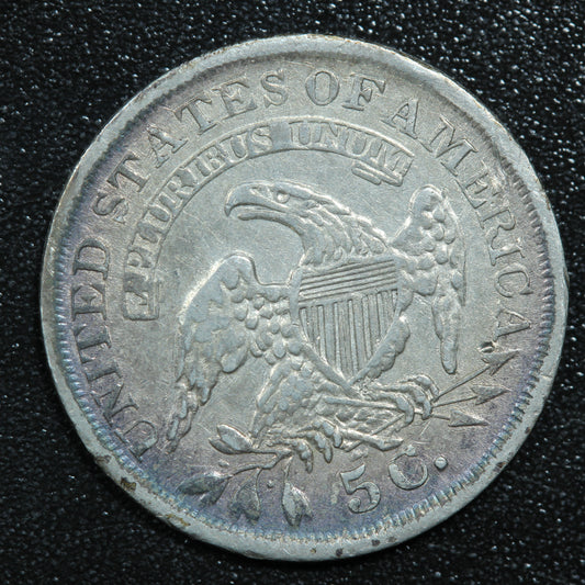 John Reich designed this capped-head concept of Liberty, and it was modified by Chief Engraver of the Mint, William Kneass. It proved to be a popular design and lasted from 1807 to 1839 on the half dollar, 1815 to 1838 on the quarter, 1809 to 1837 on the dime, and 1829 to 1837 on the half dime.[2] All four of these coin were struck in 89.2% silver and 10.8% copper.[3][4][5][6]