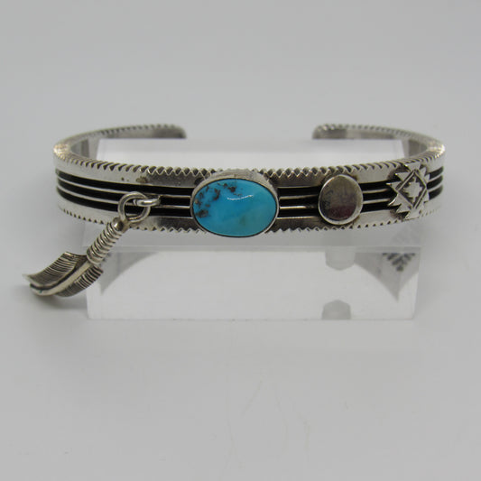 Navajo Ray King Turquoise Dangle Feather Cuff Bracelet - ~6 inch