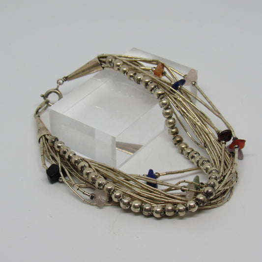 Sterling Silver Liquid Silver Bracelet w/ Beads & Stones - 8 inch