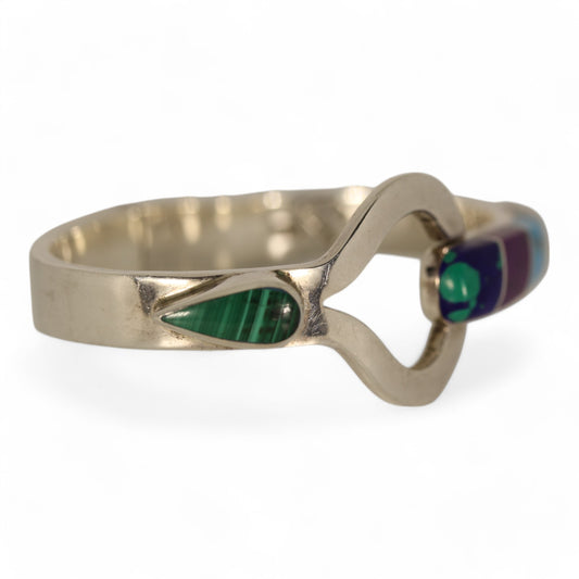 Sterling Silver 925 Mexico TL-88 Multi Stone Hinged Bangle Bracelet - ~6.5 inch