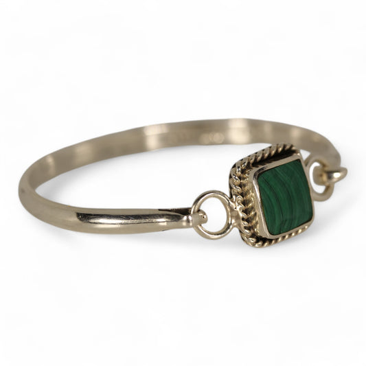 Sterling Silver 925 Mexico TL-3? Malachite Bangle Bracelet - ~6 inch