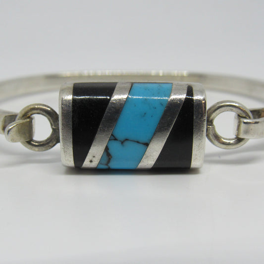 Vintage Sterling Silver 925 Mexico TC-30 Turquoise Onyx Bangle Bracelet - 7 inch