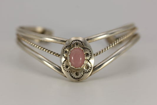 Vintage Navajo Sterling Silver Pink Mother of Pearl? Signed LJM Cuff Bracelet - 15.5 gr 6 in