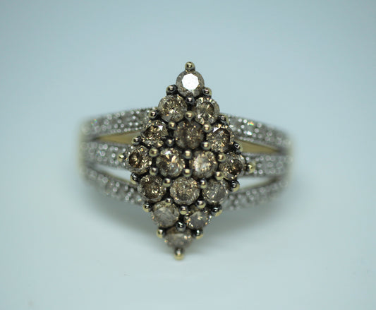 10k Yellow Gold ~.6 ctw Round Fancy Brown Diamond Cocktail Ring - Sz 8.75