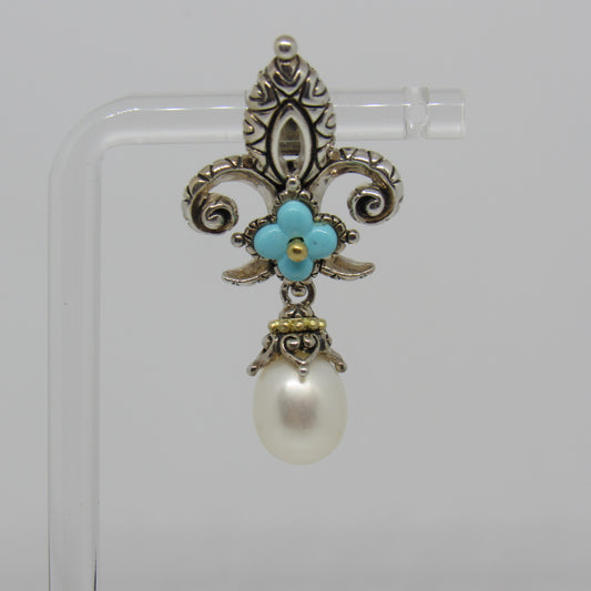 Barbara Bixby 925 Sterling Silver 18K Gold Turquoise Pearl FLEUR DE LIS Pendant
