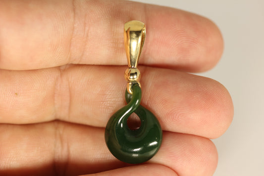 18k Yellow Gold Green Jade Infinity Twist Pendant ~1.5"
