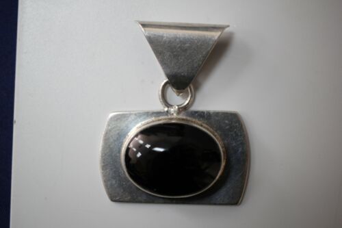 Vintage Mexico TZ-13 Sterling Silver 925 Black Onyx Pendant