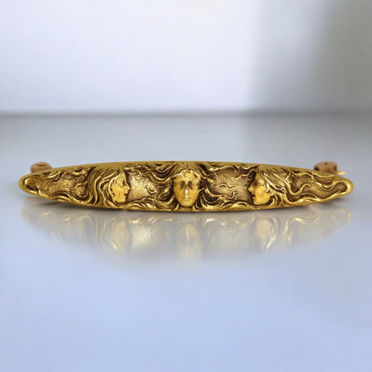 14k Art Nouveau Maiden Woman Brooch 14 Karat Gold Circa 1900 - ~1.75"
