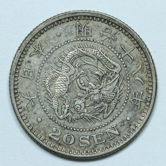 1885 Yr.18 Japan 20 Sen Silver - Emperor Mutsuhito - Y# 24