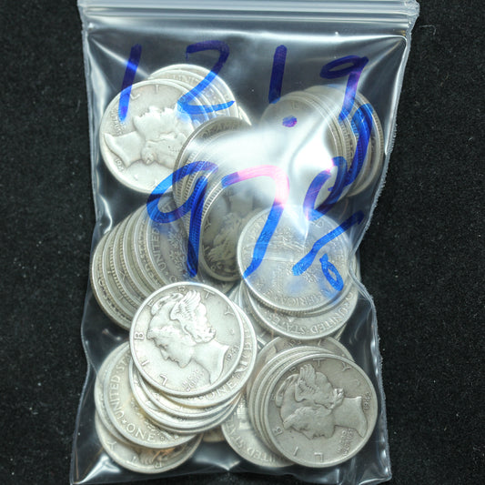 Roll of Mercury Dimes - $5 Face Value - 50 Dimes Avg Circ No Culls 97%