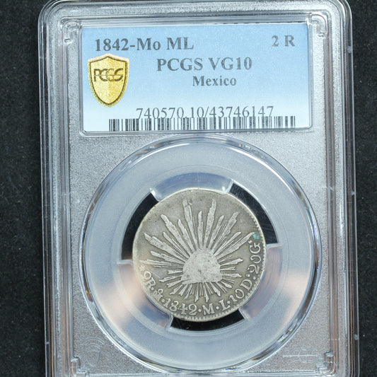 1842 Mo ML 2 Reale Mexico PCGS Certified VG10 Super Rare