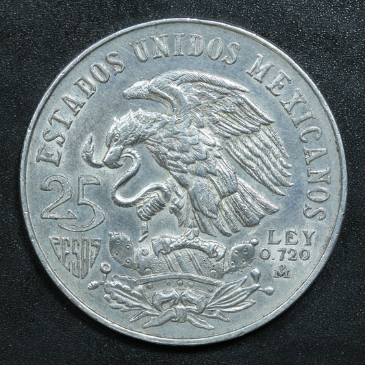1968 Mexico 25 Peso Olympic Games Silver Coin (.720 Purity, .5208 oz ASW)