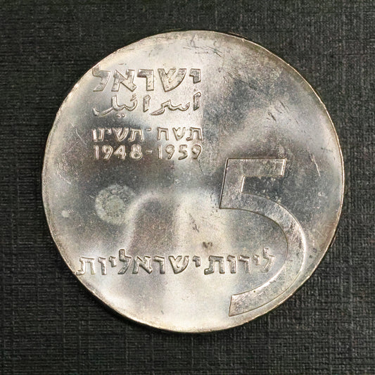 1959 ISRAEL 5 Lirot 11th Anniversary of Independence .900 Silver Coin