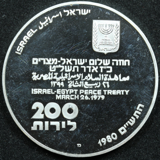 1980 ISRAEL & EGYPT Peace Treaty Sterling .900 Proof 200 Lirot Coin