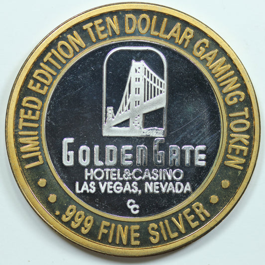 Golden Gate Hotel Limited Edition Ten Dollar $10 Gaming Token .999 Fine Silver -