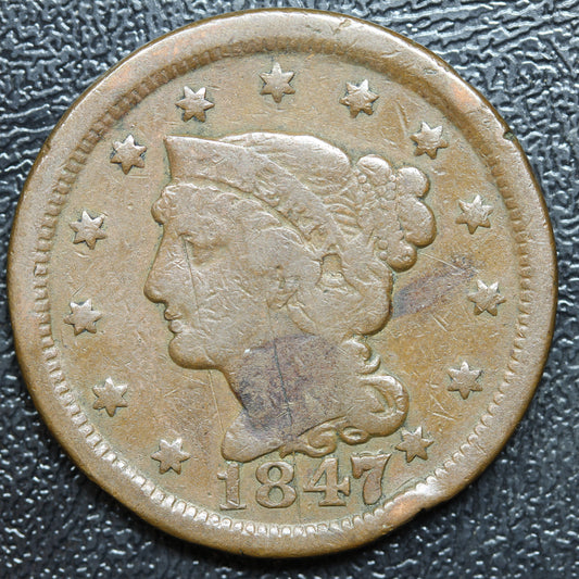 1847/47 Braided Hair US Large Cent 1C Penny 7 Over Small 7
