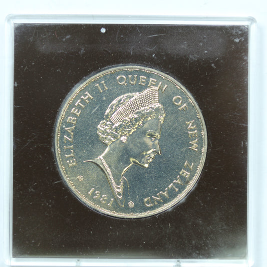 1981 New Zealand NZ $1 Coin Royal Visit BU in Perspex Case