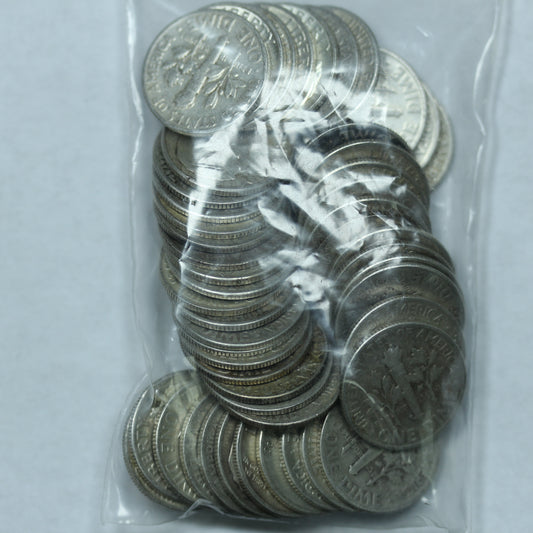 Roll of Silver Roosevelt 90% Silver Dimes 5$ Face Value Avg Circ No Culls