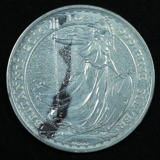 2016 Great Britain 2 Pound 1 oz .999 Fine Silver Britannia - Milk Spots