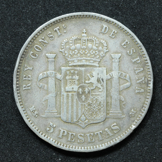 1885 5 Pesetas MS M Spain Silver Coin - ALFONSO XII - KM# 688