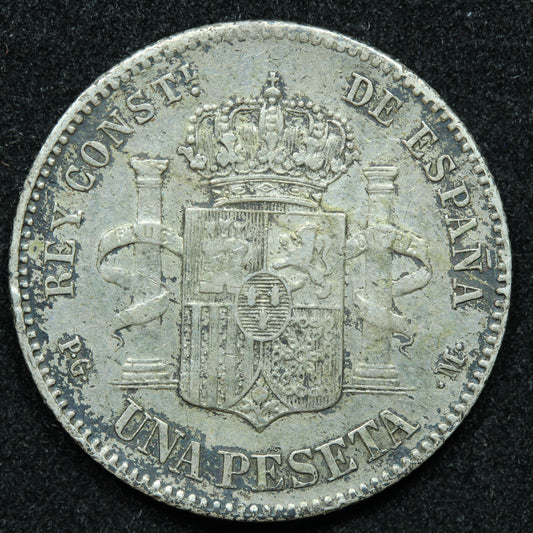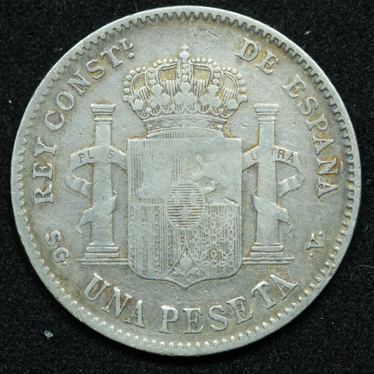 1891 Una Peseta PG M Spain Silver Coin - ALFONSO XIII - KM# 691