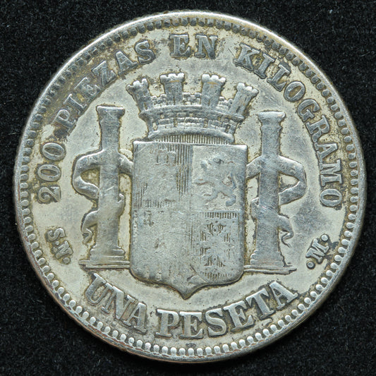 1869 Una Peseta SN M Spain Silver Coin - Seated Liberty - KM# 652