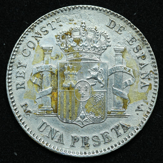 1896 Una Peseta Spain Silver Coin - ALFONSO XIII - KM# 706