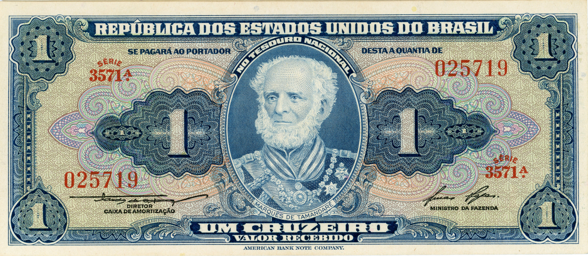 1 Cruzeiro Brazil Brasil Bank Note Currency Super Crisp Note Serie 3571