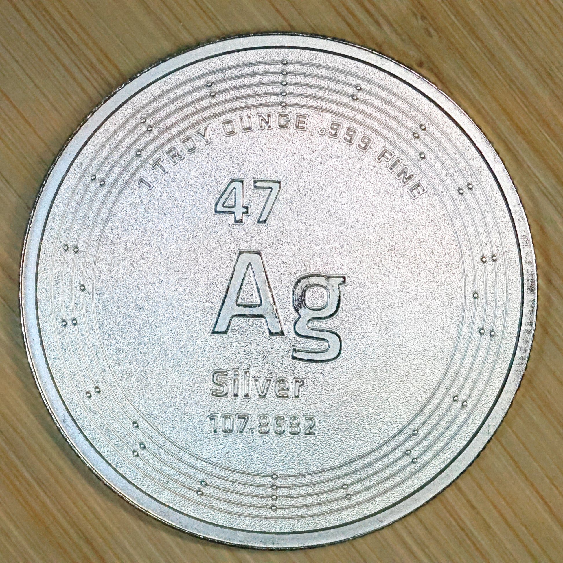 1 oz .999 Fine Silver Elemetal Round Ag Symbol