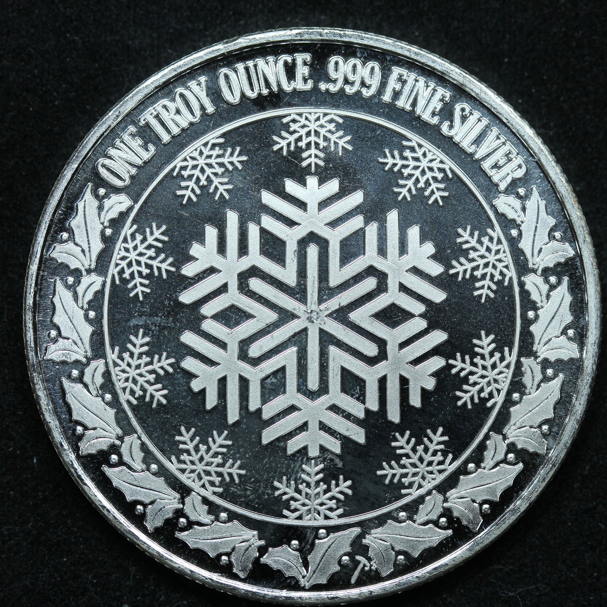 1 oz .999 Fine Silver - Happy Holidays Train Snowflakes Art Round w/ Capsule