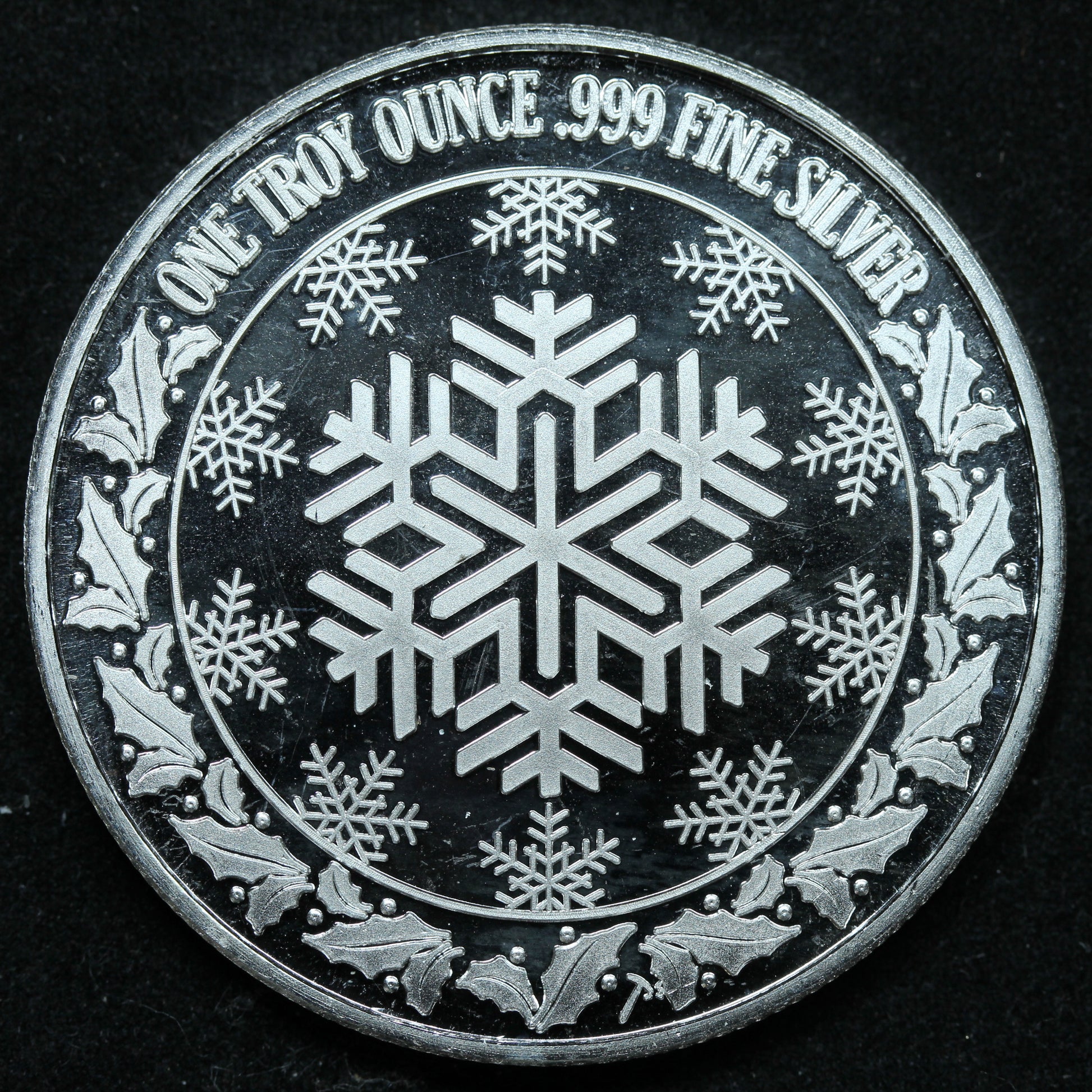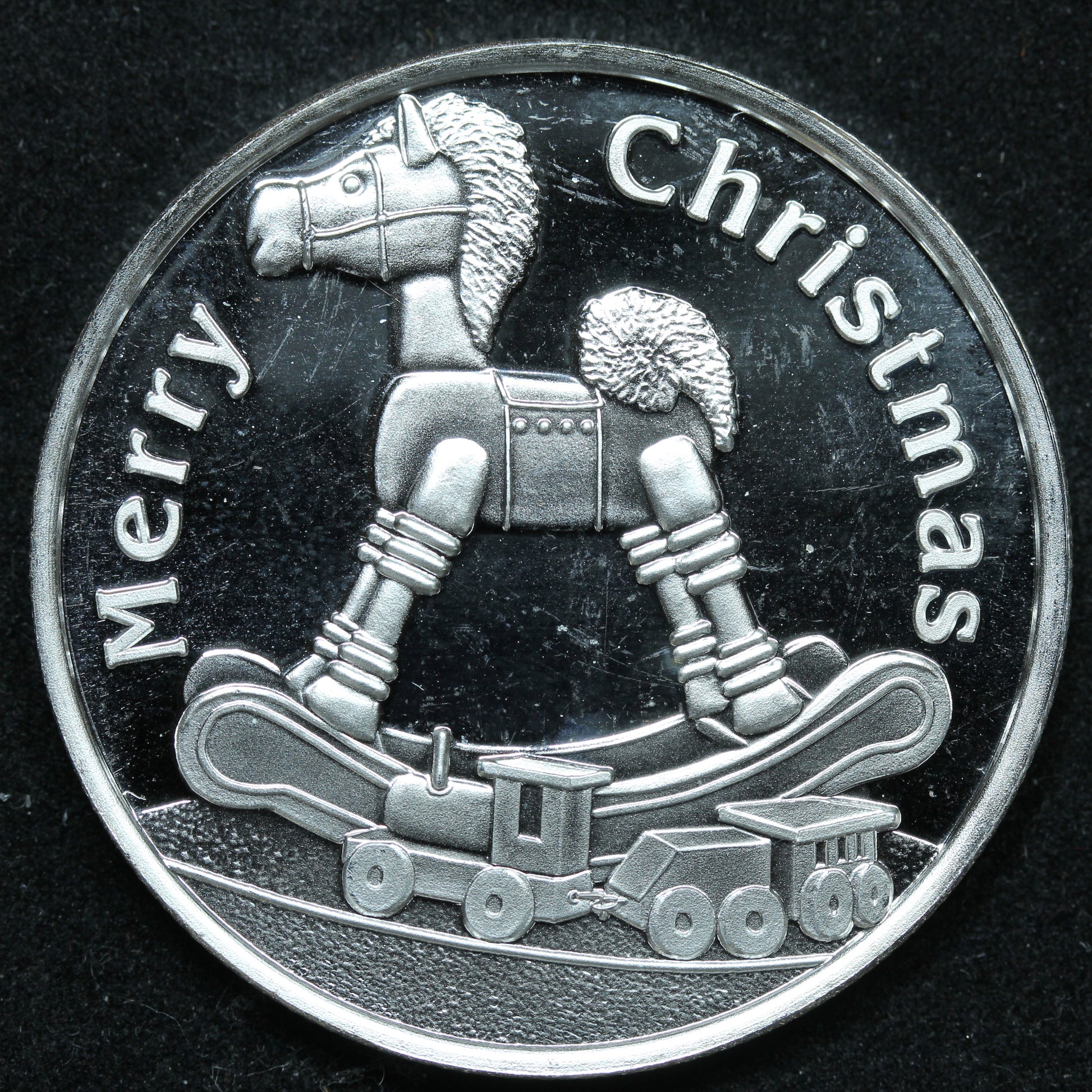 1 oz .999 Fine Silver - Merry Christmas Rocking Horse Snowflakes Art Round w/ Capsule