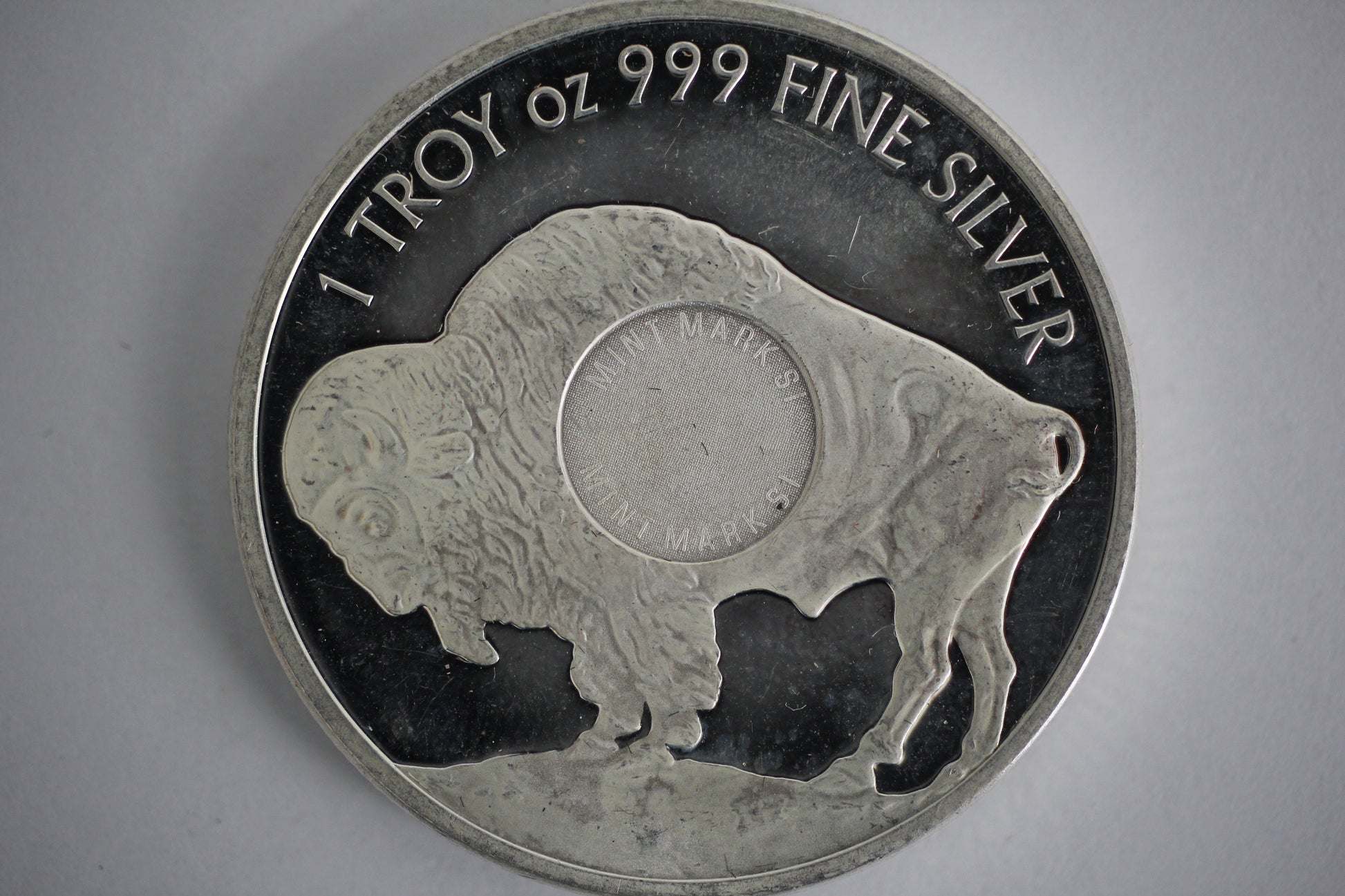 1 oz .999 Fine Silver - Sunshine Minting Buffalo Design SI Mint Mark - Spots/Marks