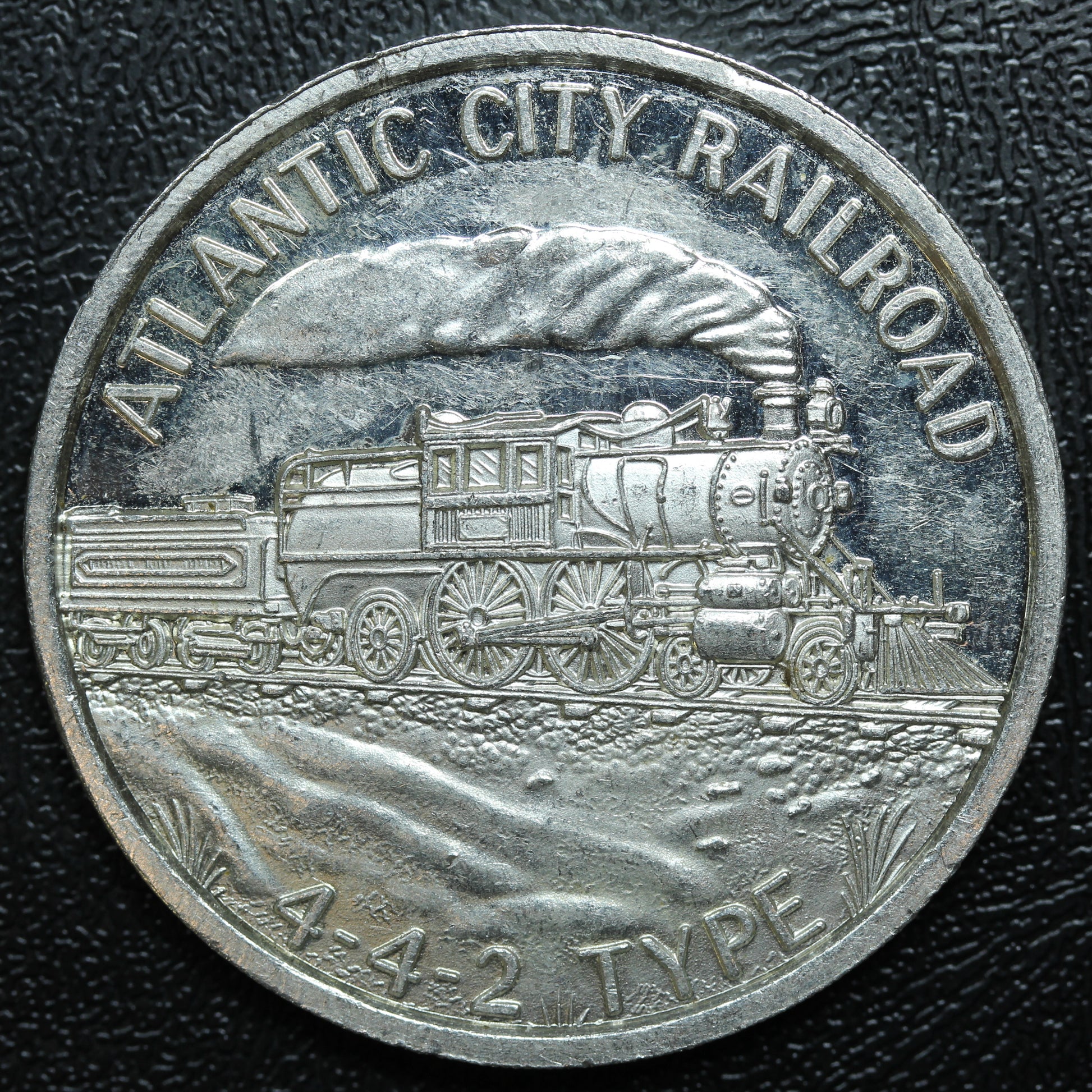 1 oz. .999 Silver Round Atlantic City Railroad 4-4-2 Type Blank Back