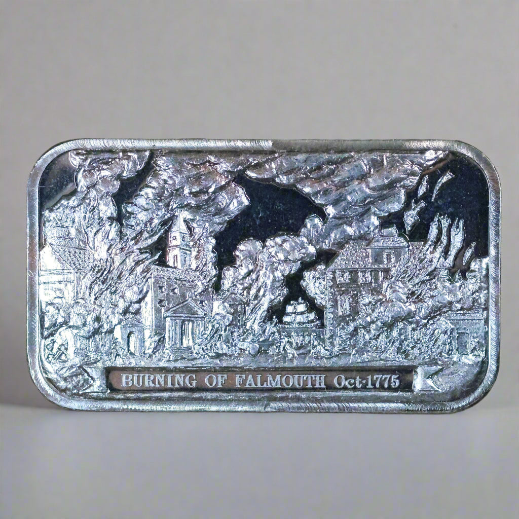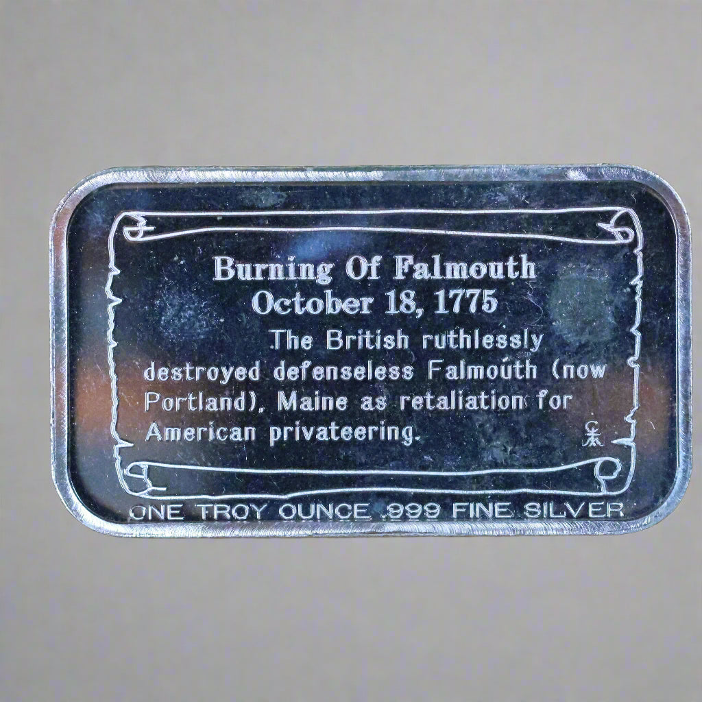 1 oz Silver .999 Fine Silver Art Bar Columbia Mint - Burning of Falmouth