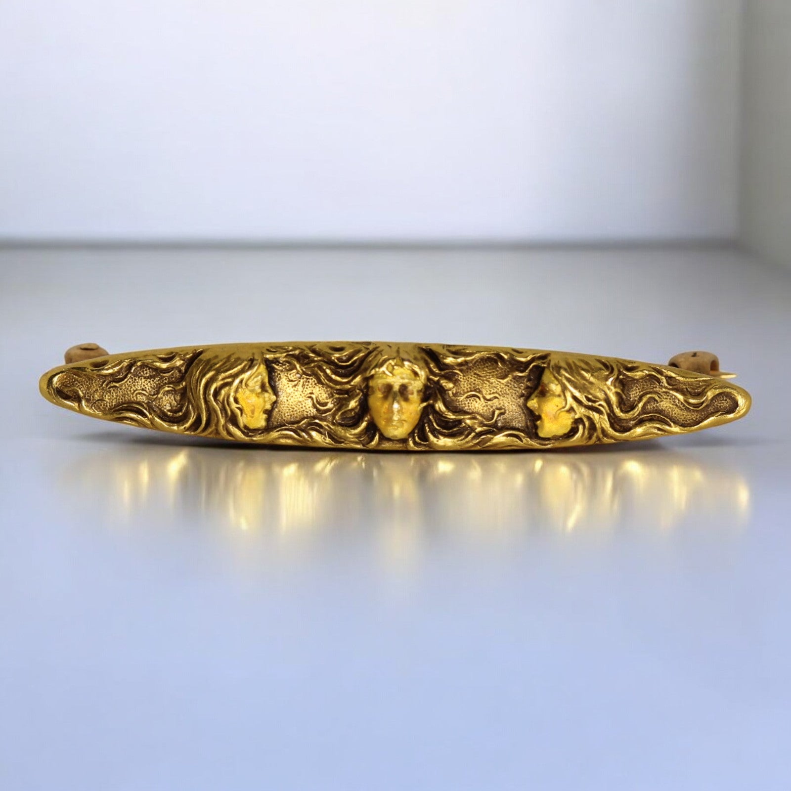 14k Art Nouveau Maiden Woman Brooch 14 Karat Gold Circa 1900 - ~1.75"