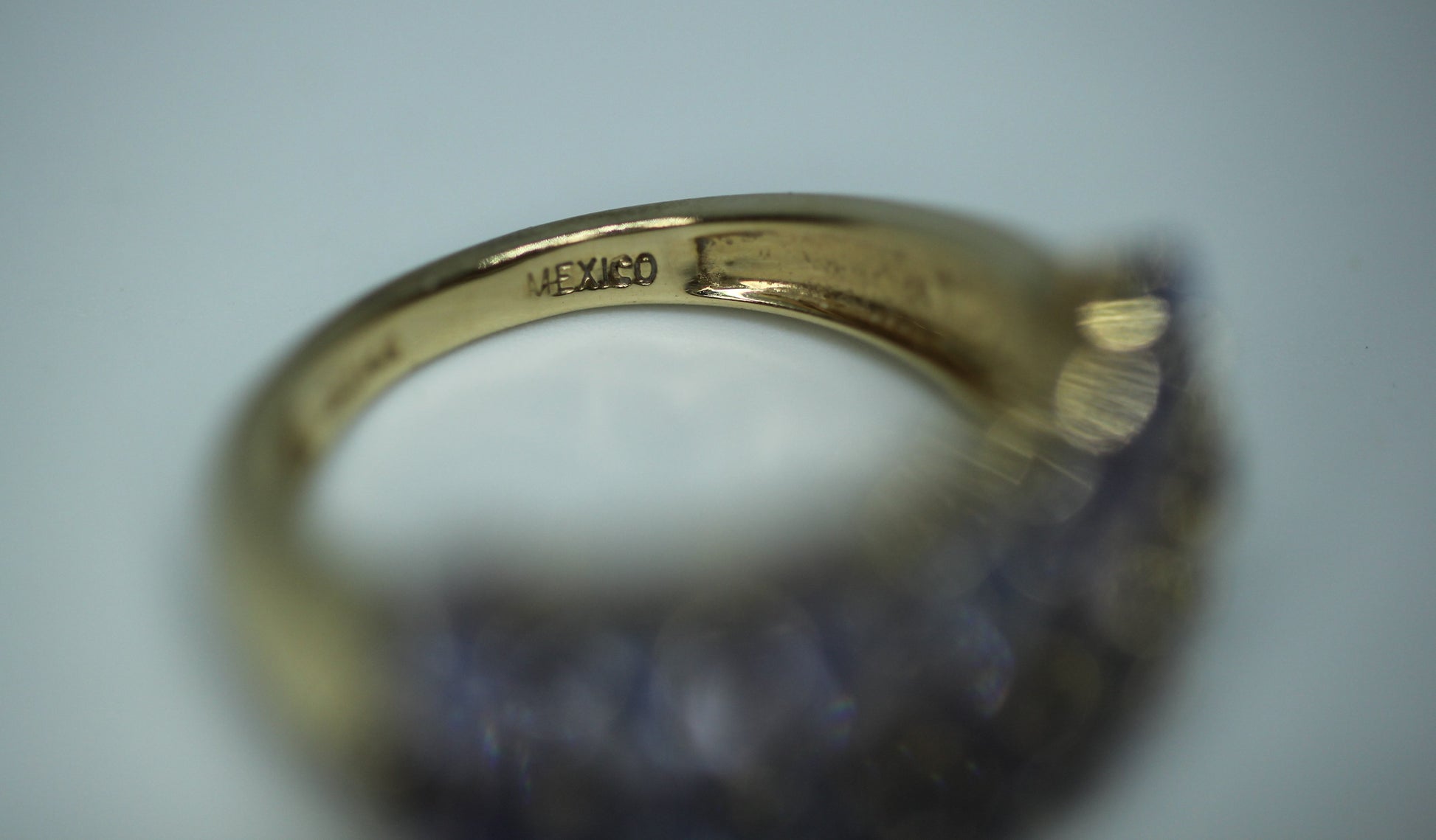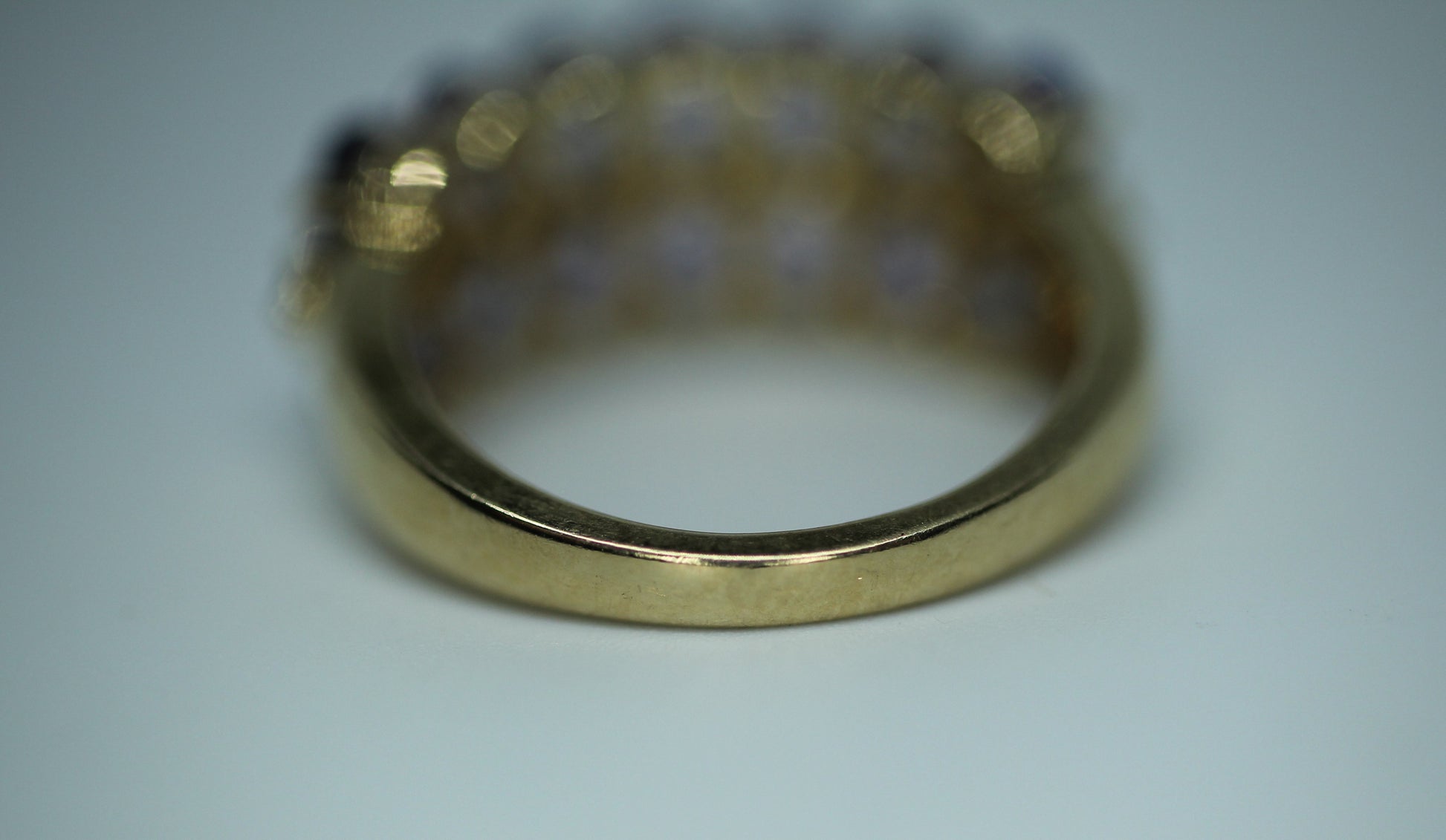 14K Yellow Gold ~2.15 ctw Tanzanite & Sapphire Two Row Cluster Ring - Size 5