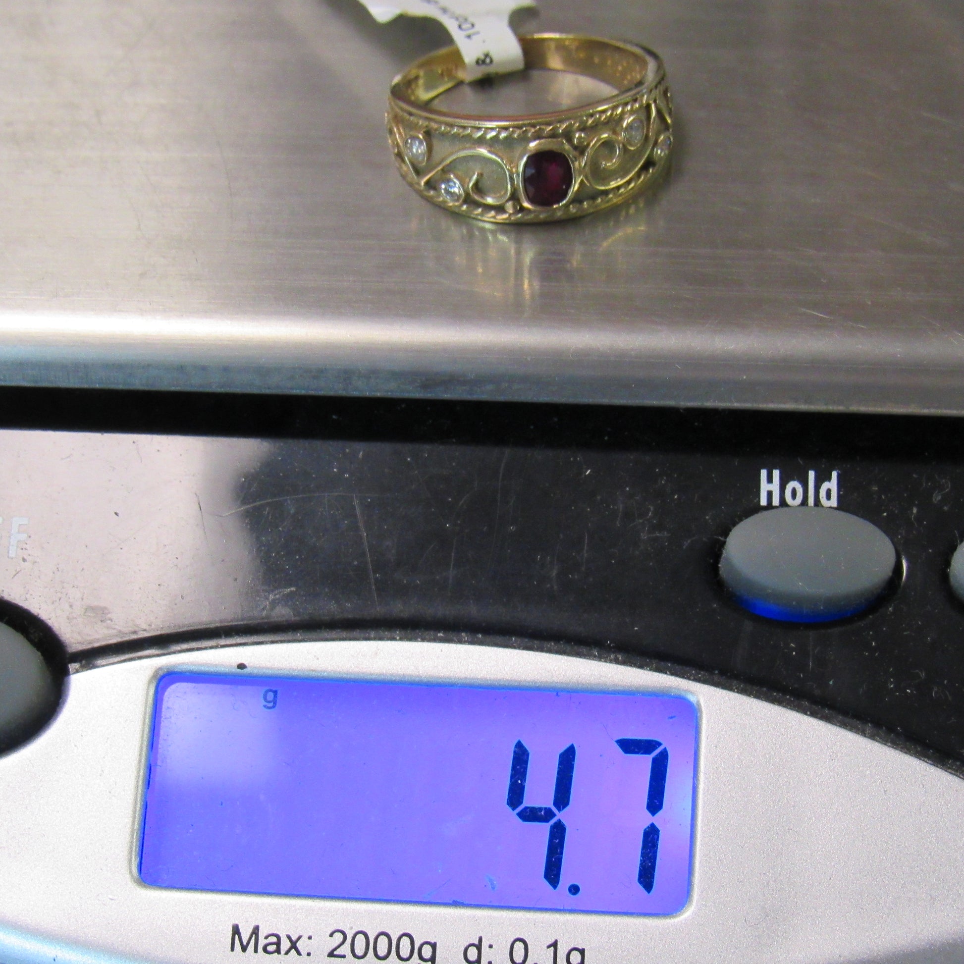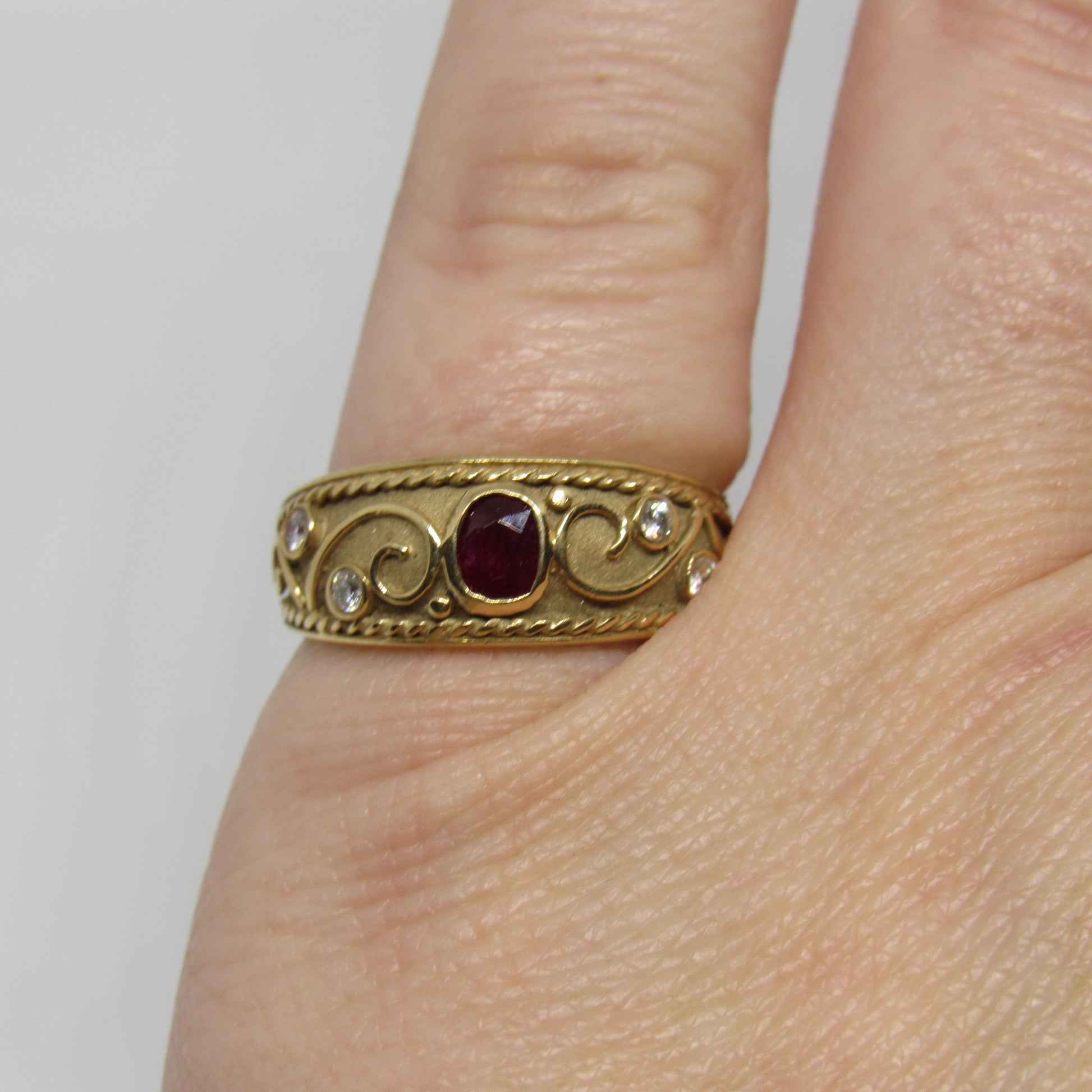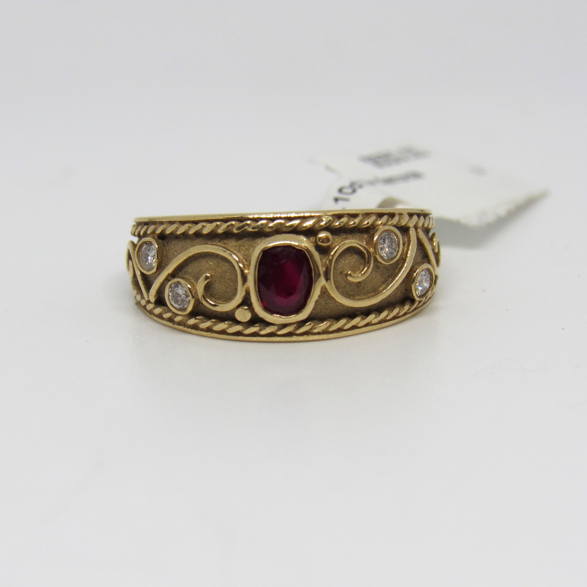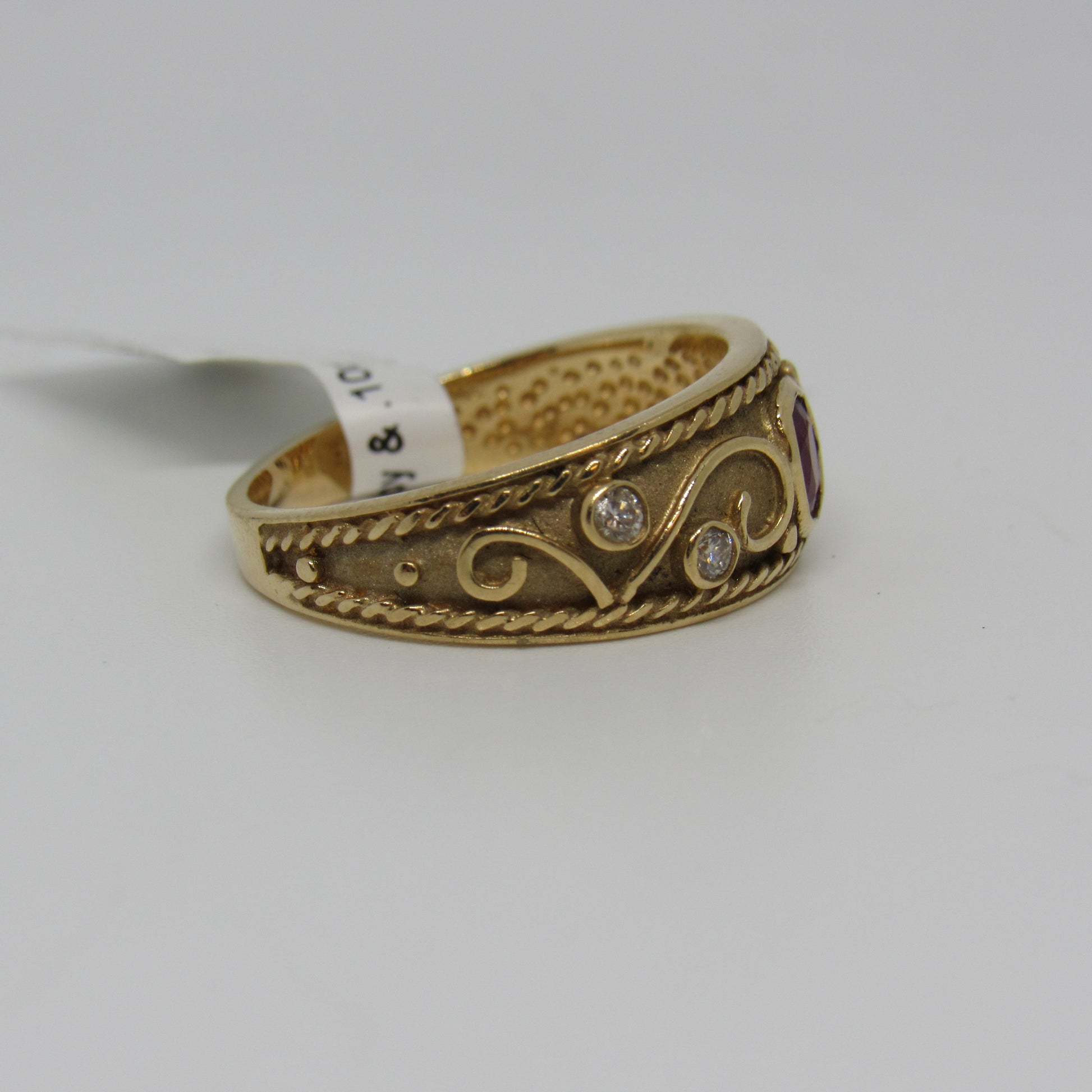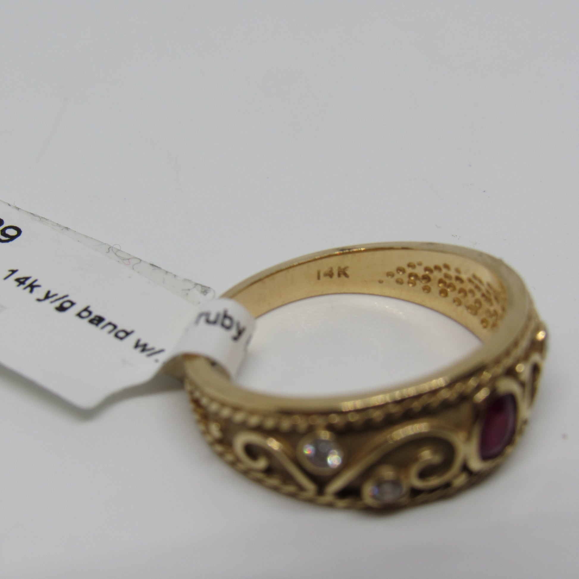 14k Yellow Gold .39 ct Ruby & .1 cttw Diamond Accent Ring Band - Sz 7