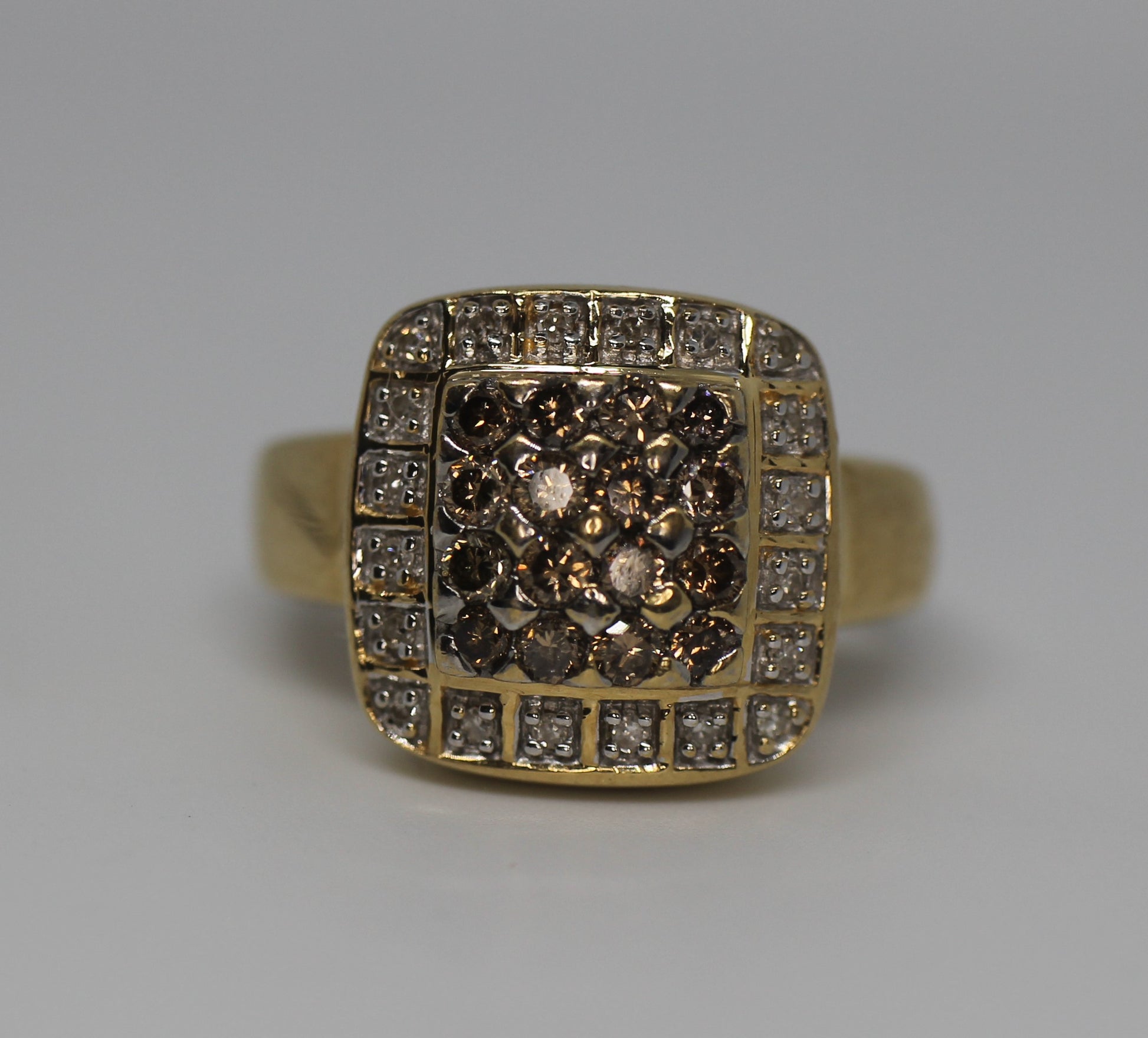 14k Yellow Gold .47ctw Round Diamond & Fancy Brown Halo Ring - Sz 4.25
