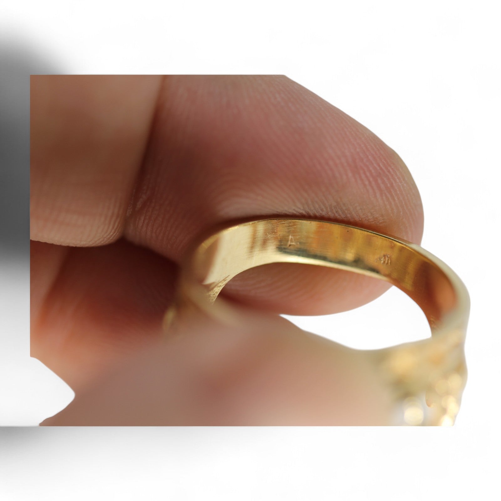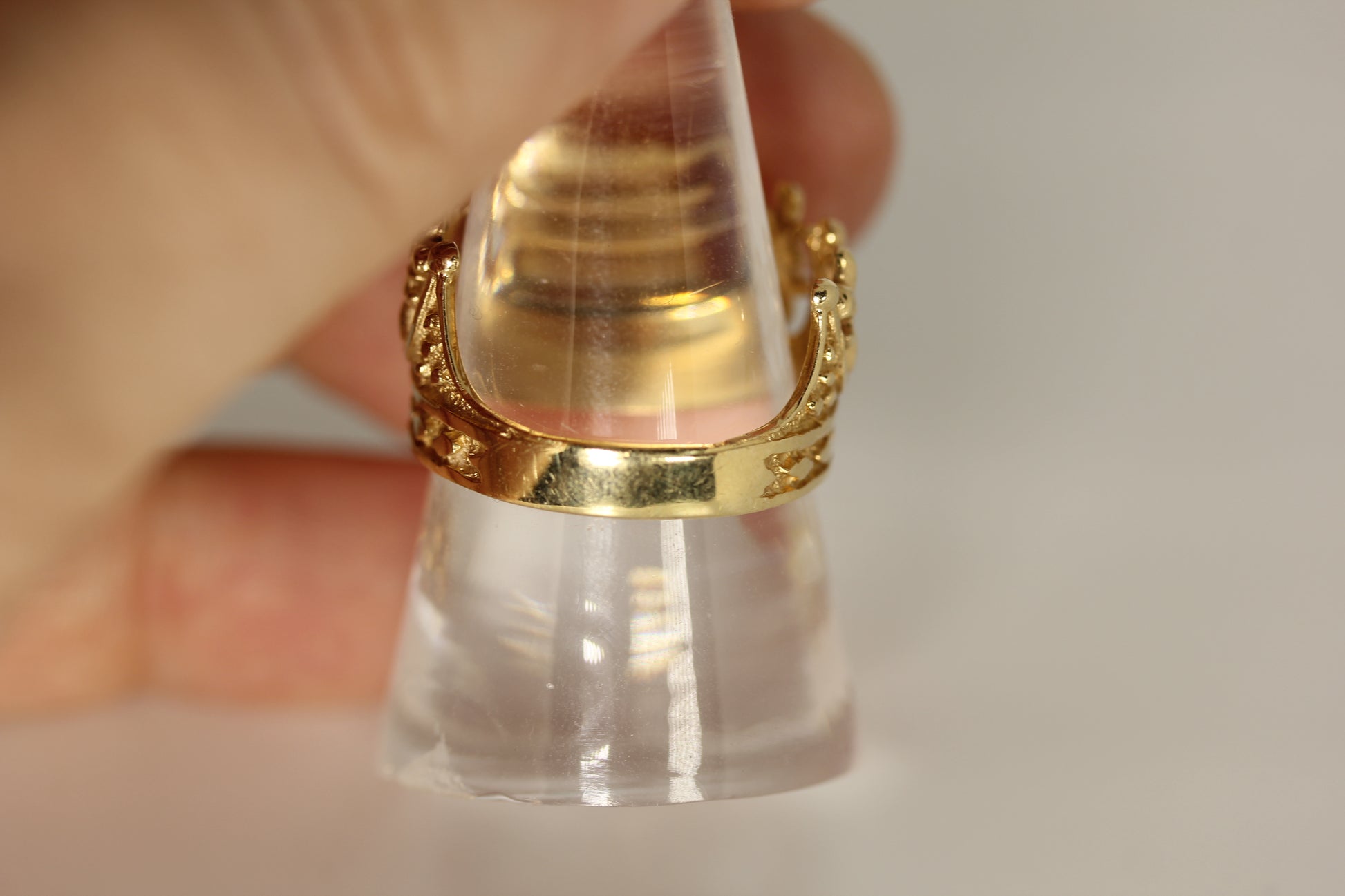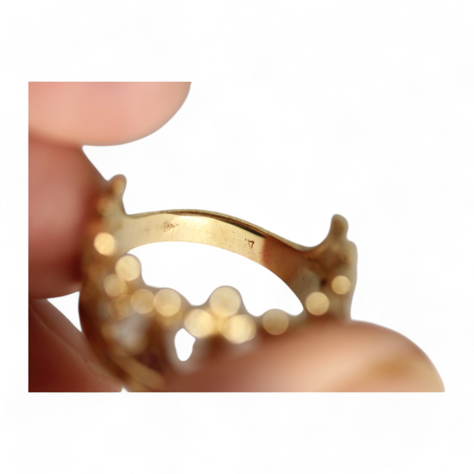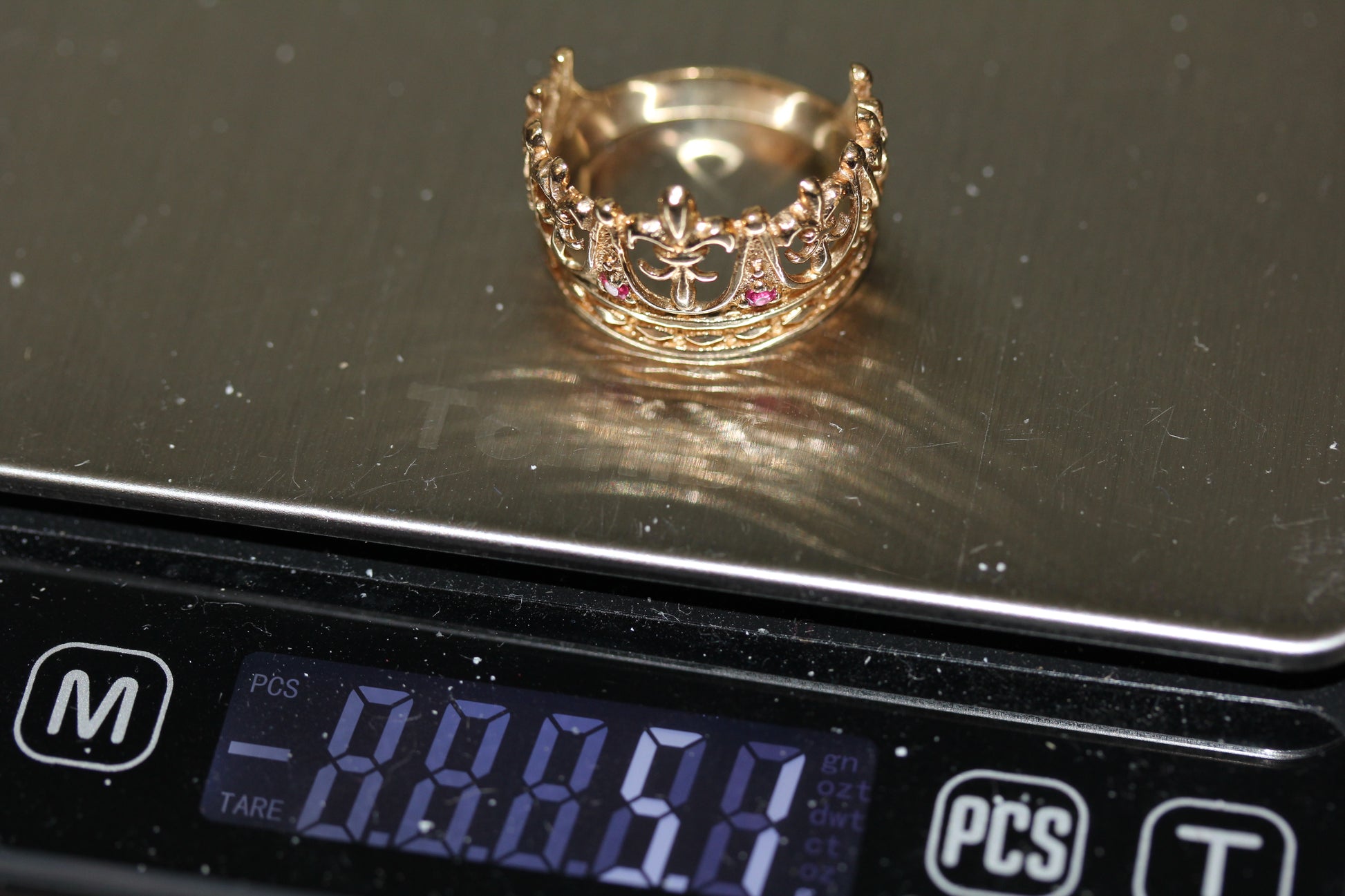 14k Yellow Gold Crown Ring with Fleur De Lis & Pink Stones - Sz 9