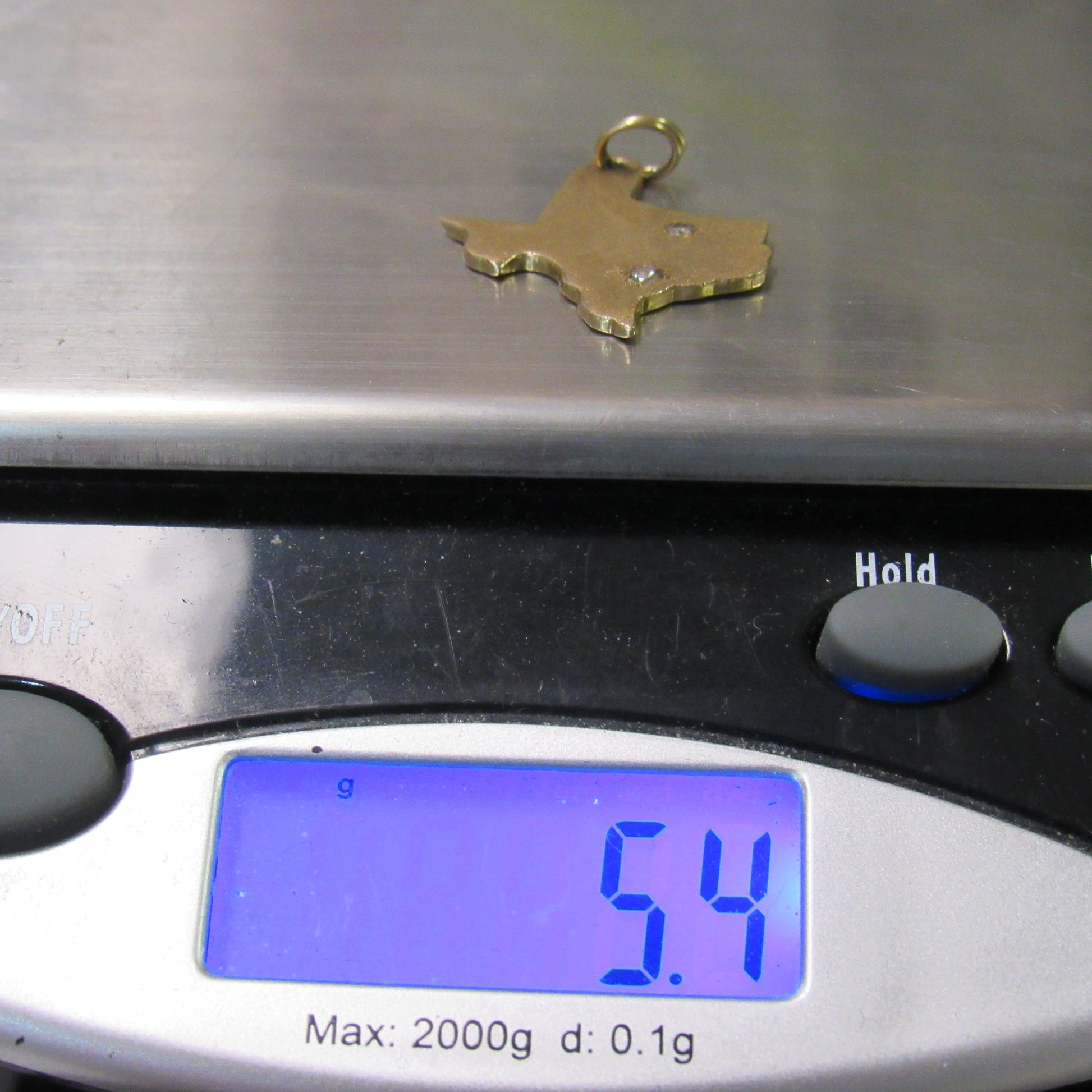 14k Yellow Gold Diamond Chip Texas State Charm Pendant - 1 inch