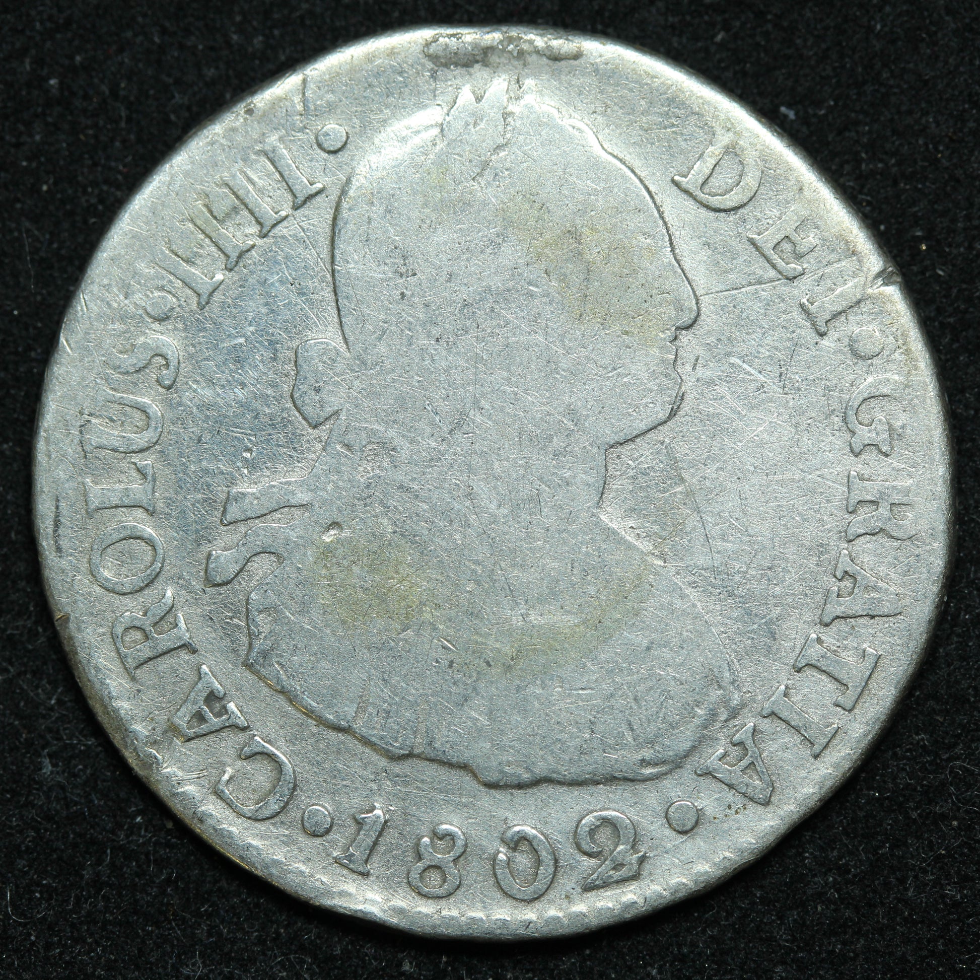 1802 2 Reales IJ Lima Peru Silver Coin - KM# 95