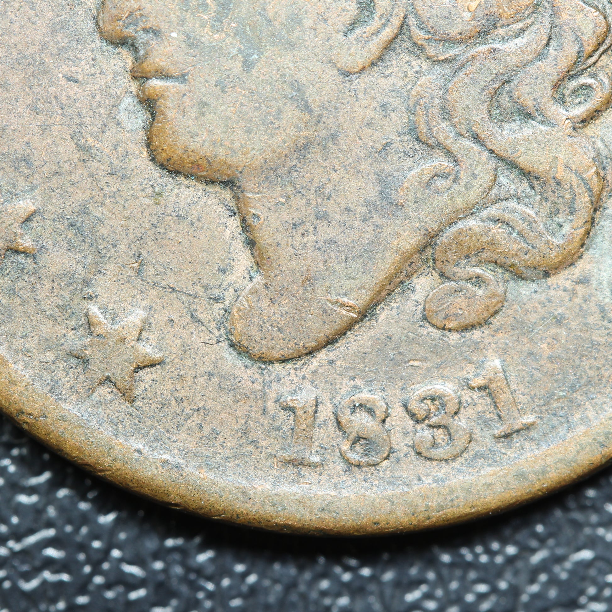 1831 Matron Head Medium Letters Large Cent 1C Penny
