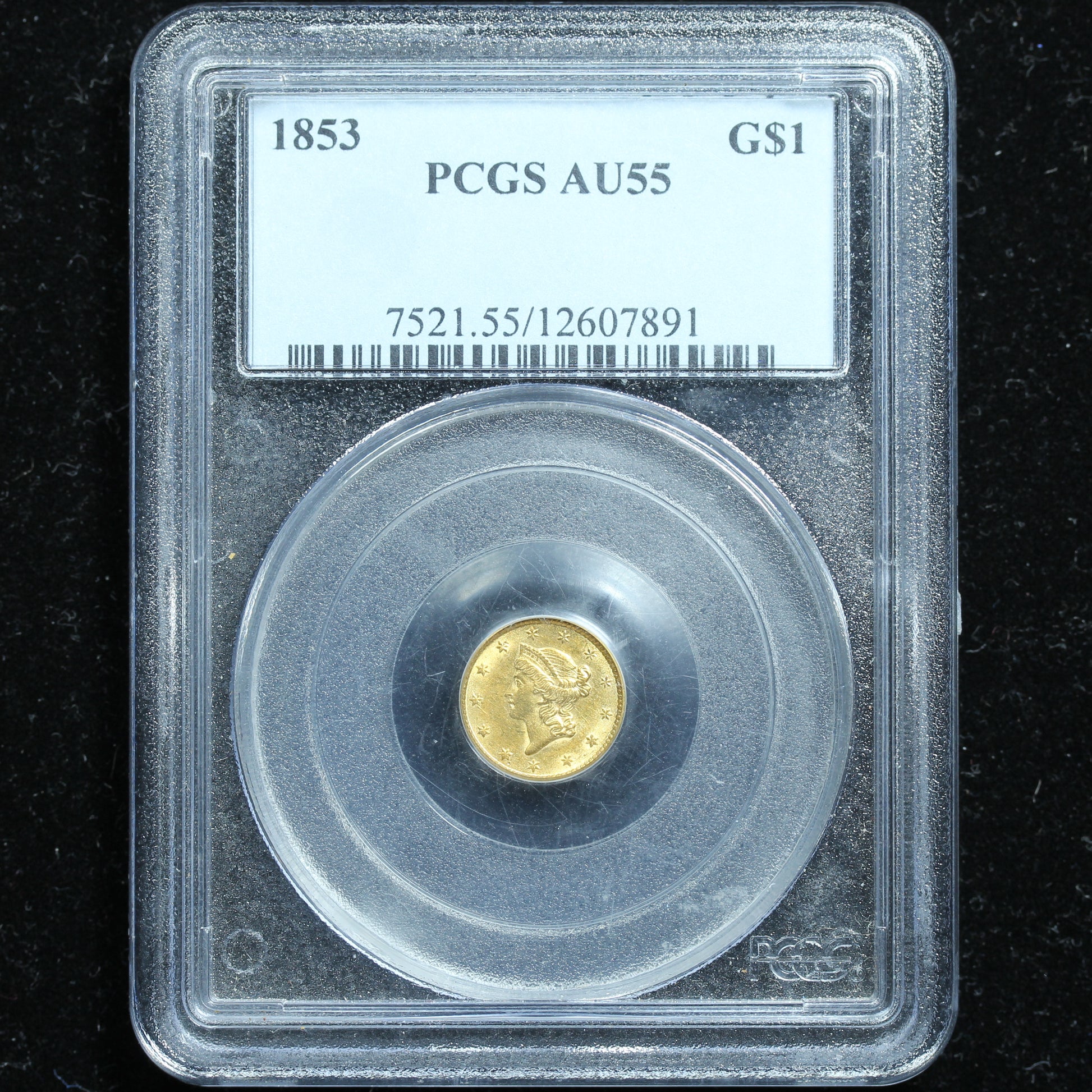 1853 US Gold $1 Dollar Liberty Head - PCGS AU55