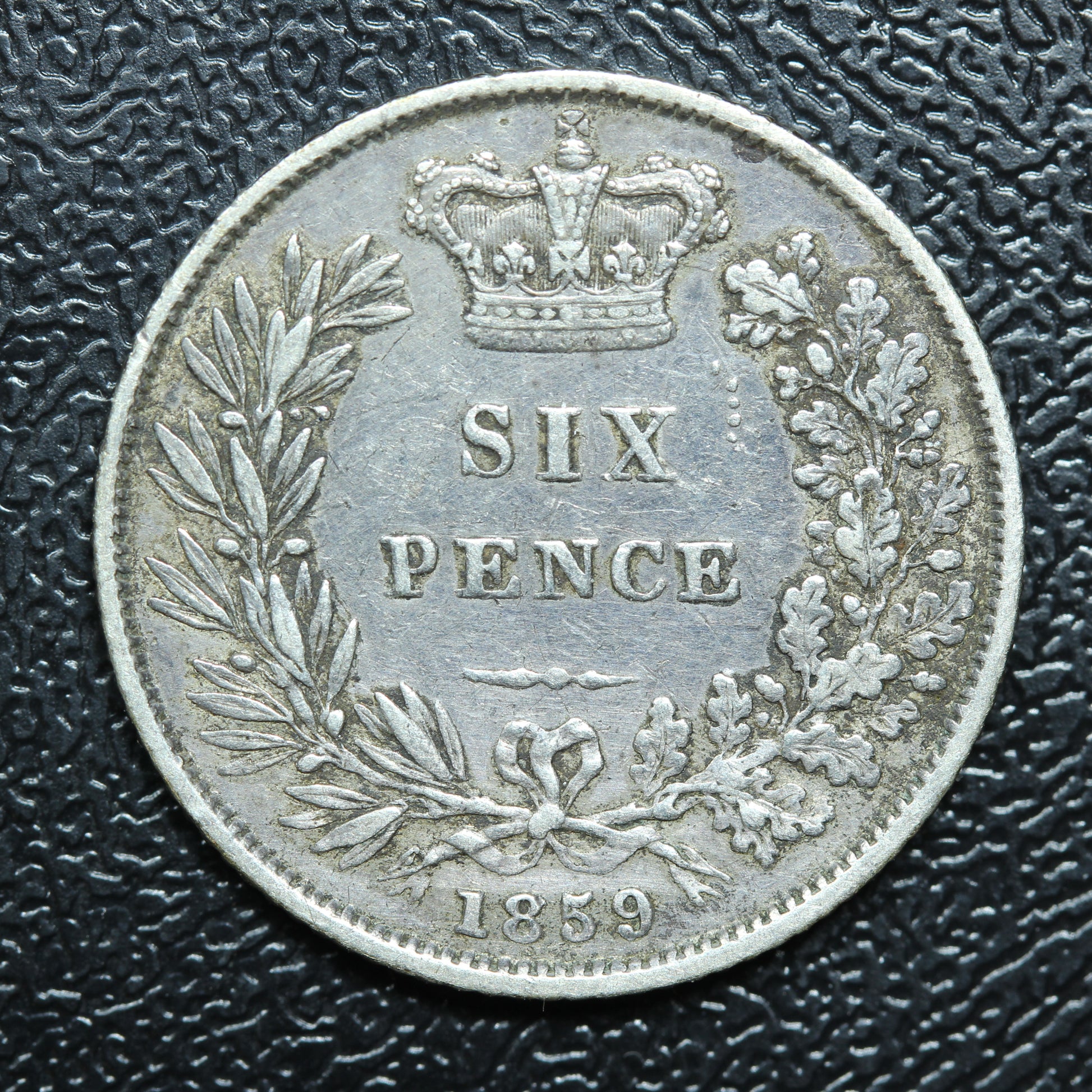 1859 Great Britain 6P Six Pence Silver Coin - KM# 733.1