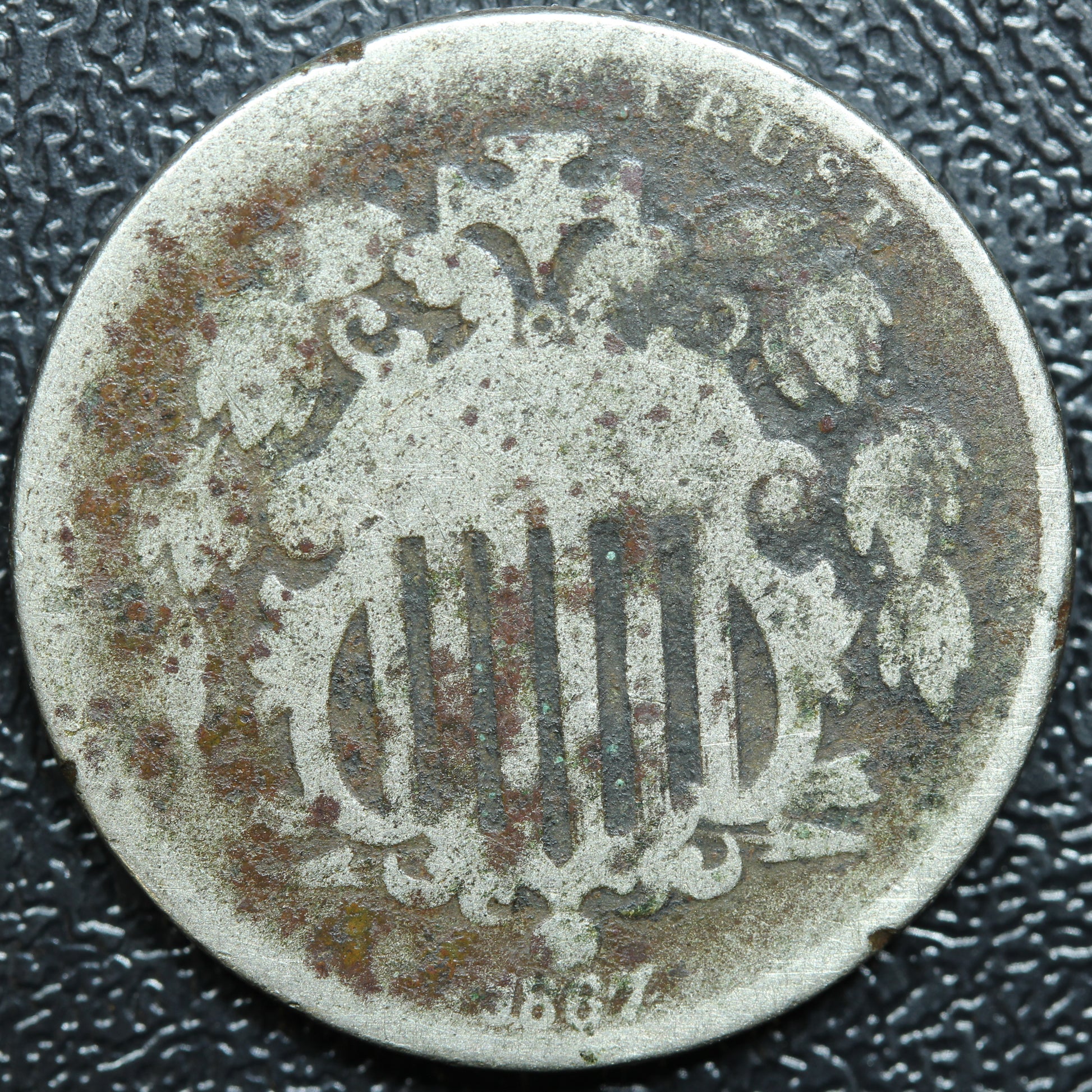 1867 Shield Nickel 5 Cents 5c Five Cents Rays