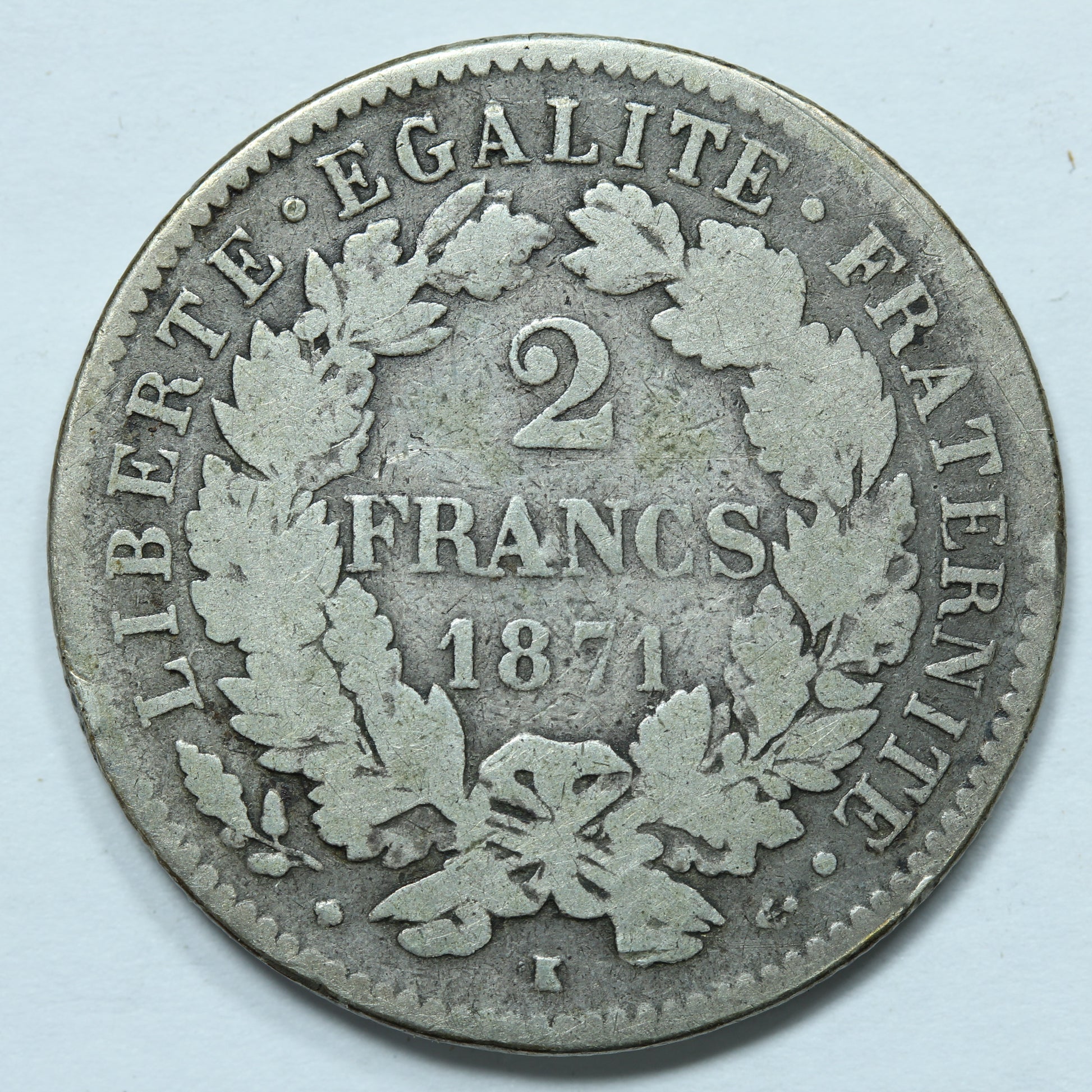 1871 2 Francs K (Bordeaux) France Third Republic Silver Coin - KM# 816.2