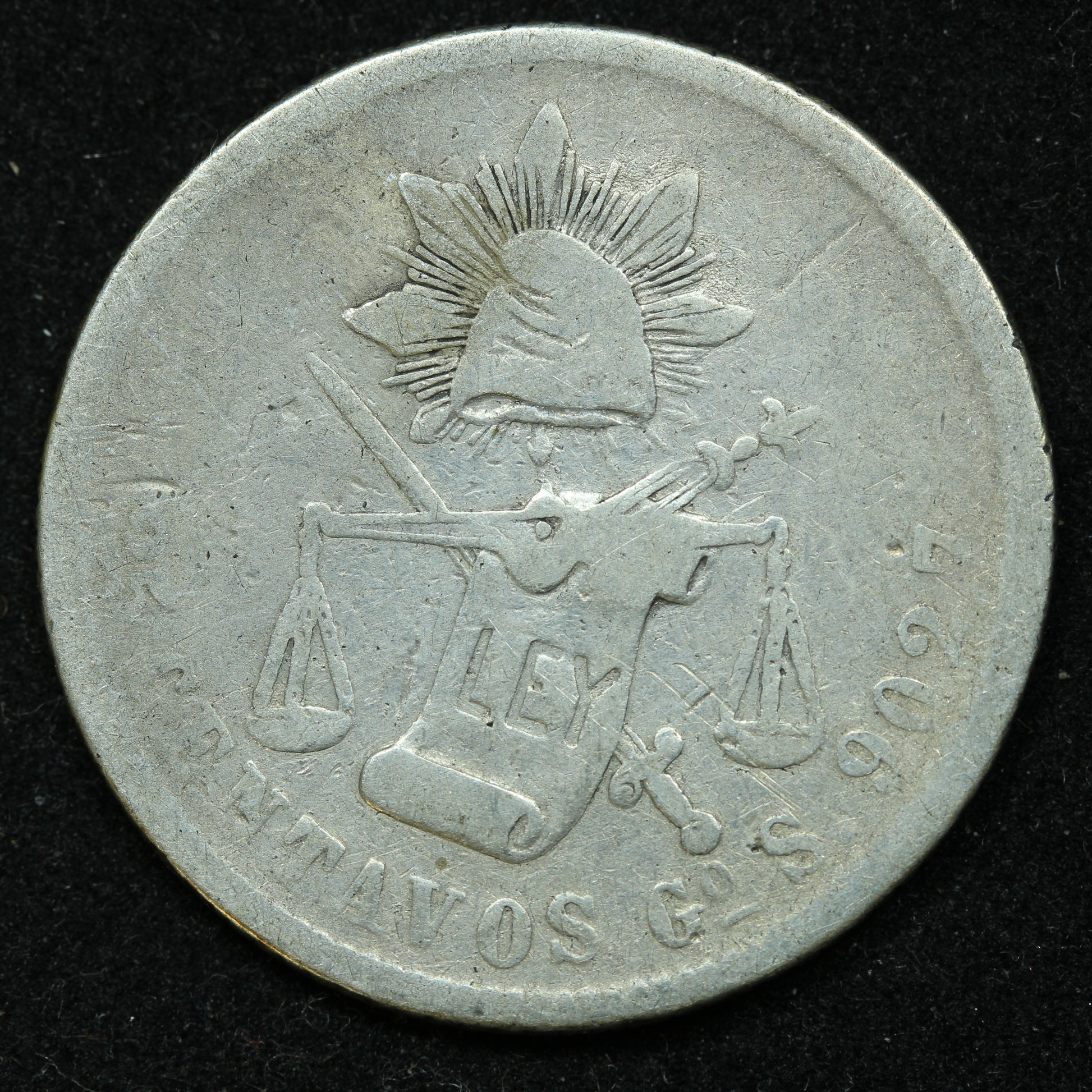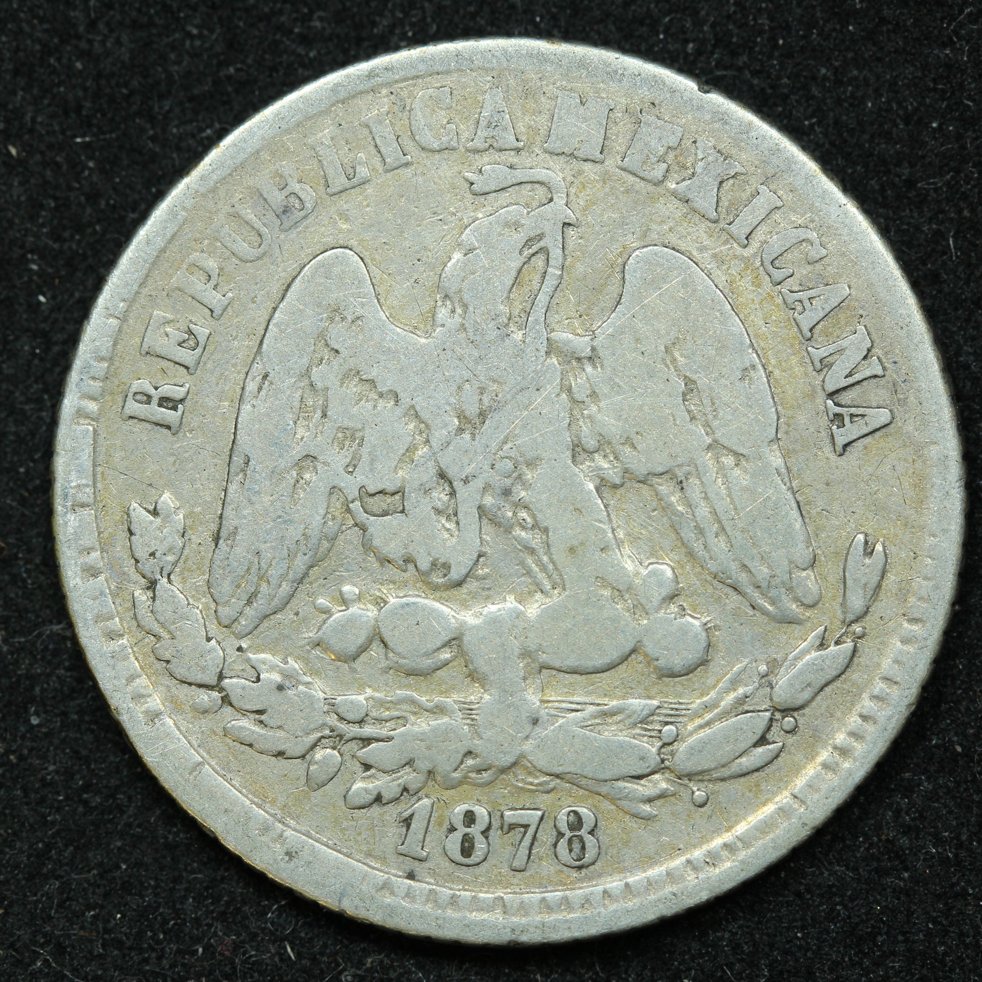 1878 25 Centavos Go S Mexico Silver Coin - KM# 406.5