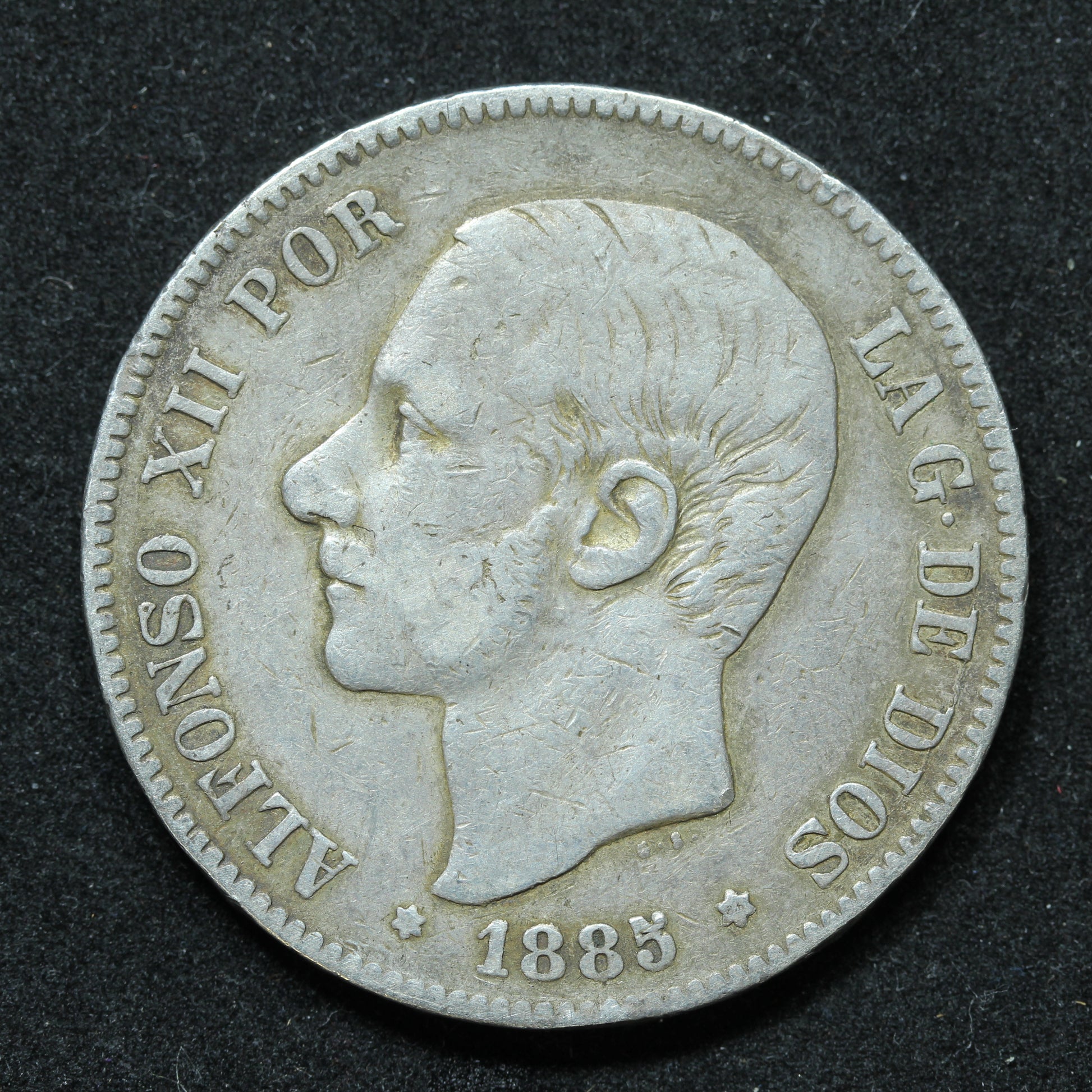 1885 5 Pesetas MS M Spain Silver Coin - ALFONSO XII - KM# 688