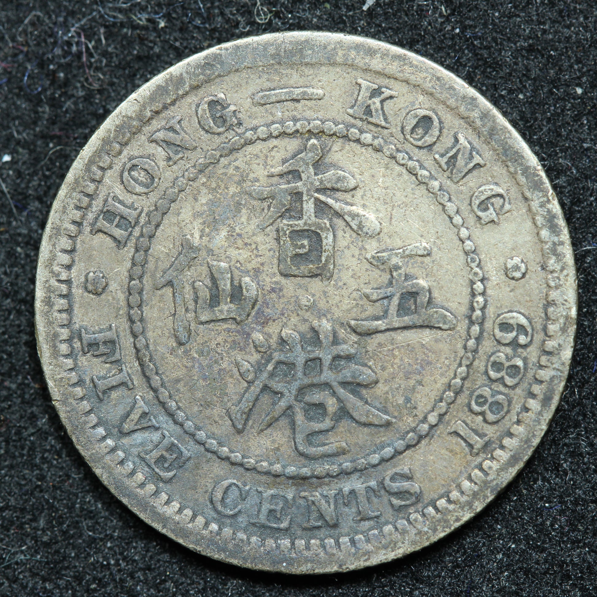 1889 Hong Kong 5 Five Cents Silver .800 Fine KM# 5