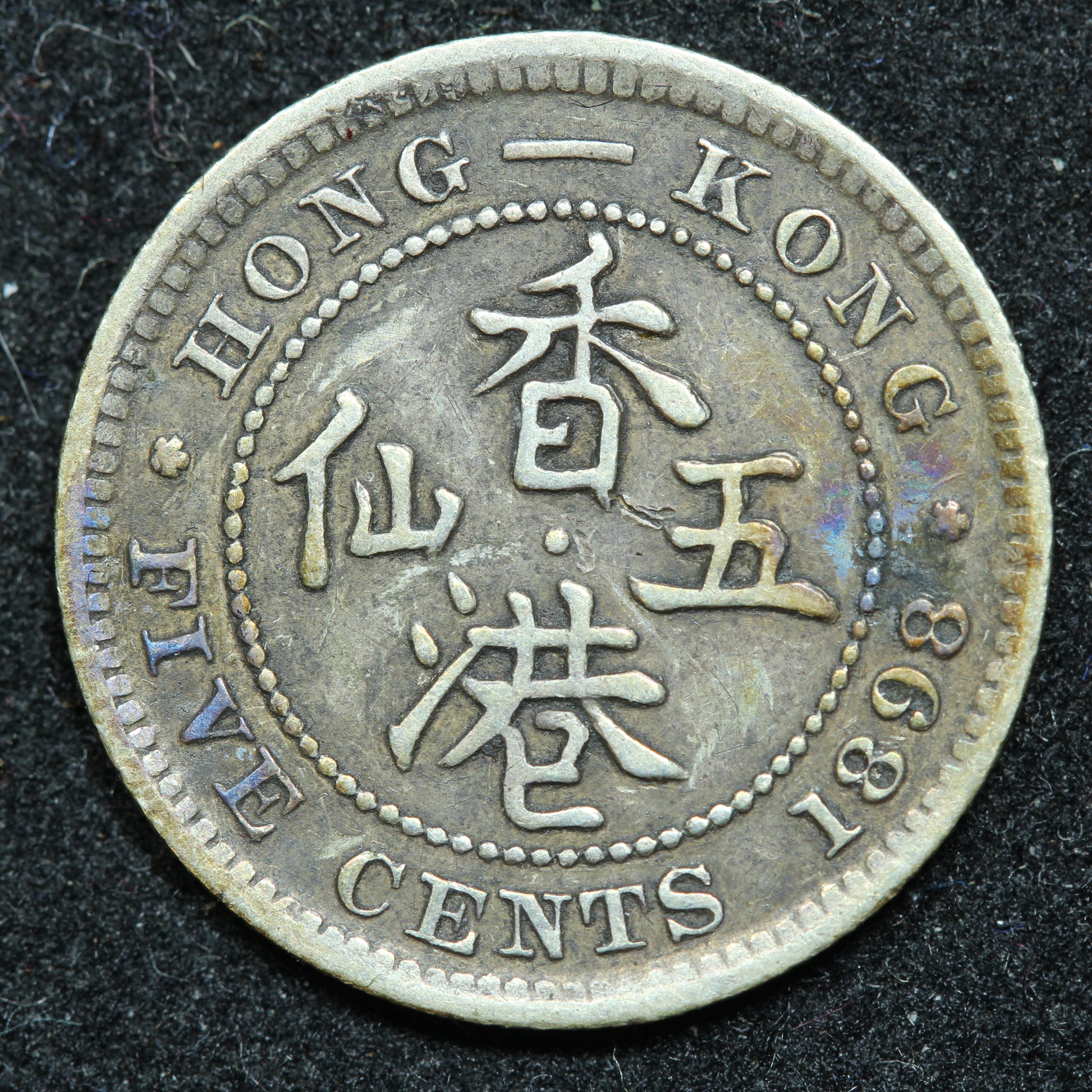 1898 Hong Kong 5 Five Cents Silver .800 Fine KM# 5